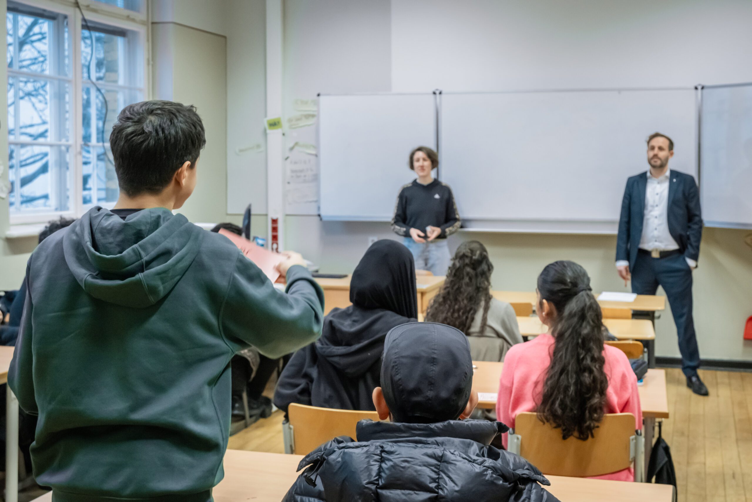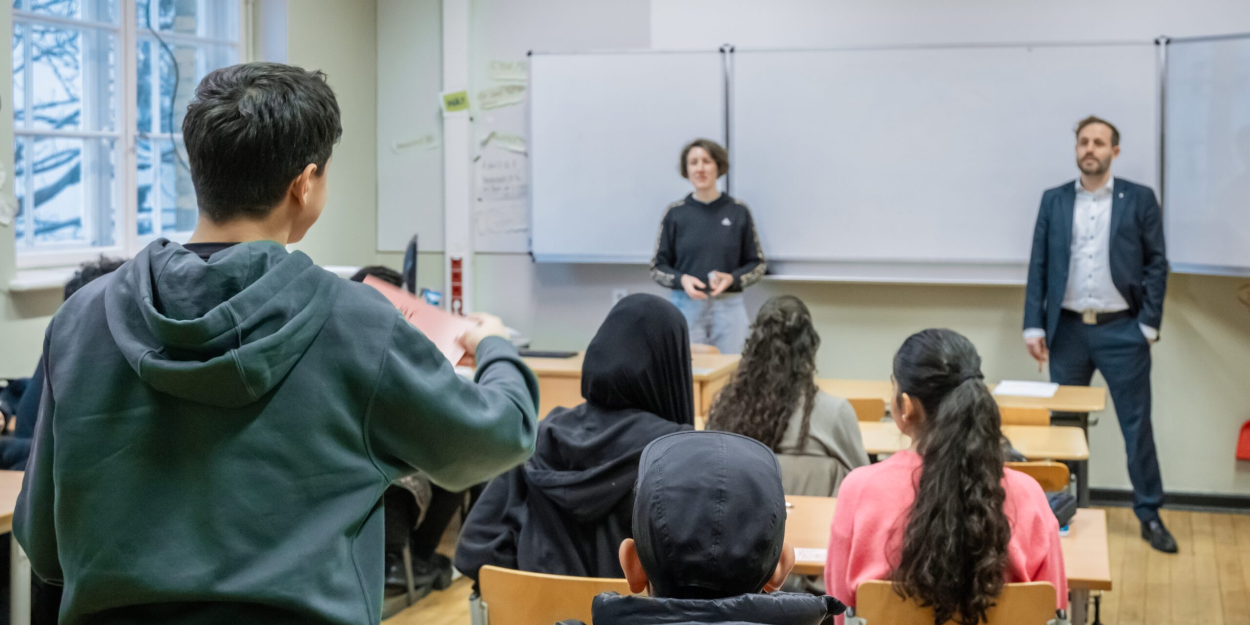 Übernahme einer Unterrichtsstunde am Neuköllner Ernst-Abbe-Gymnasium in 2er-Teams